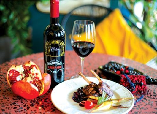 Саперави подают охлажденным до 13-15 °C. Вино хорошо сочетается с жирными блюдами грузинской кухни, особенно пловом, шашлыком из баранины, сациви. Считается, что Саперави лучший выбор к застолью, так как это вино удачно оттеняет вкус еды, не заглушая его и не теряя собственного аромата. Приятную свежесть и аромат дает вино в дополнение к овощным горячим блюда, закускам и зелени, например, к лобио или пхали.